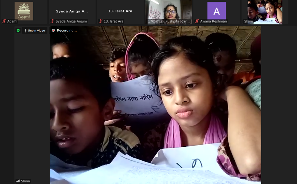 An interactive online reading session held by volunteers for students of PSD Nandipara, 2021.